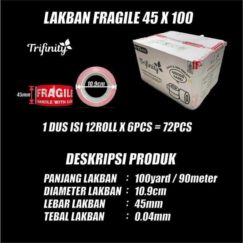 Lakban Fragile Unboxing Trifinity Garansi 90M 45mmx100yard Dus Rekat Kuat Tebal Semua Js Krm
