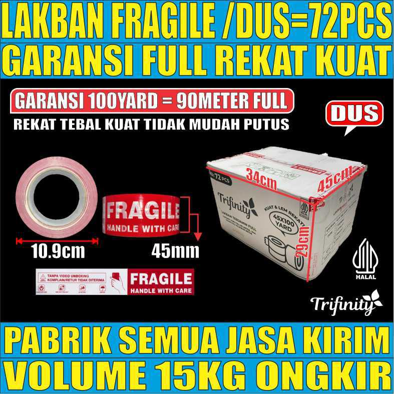 Lakban Fragile Unboxing Trifinity Garansi 90M 45x100yard Dus Rekat Kuat Tebal Gjk