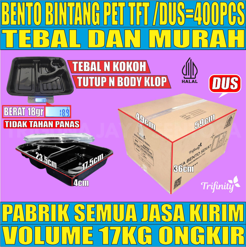 Mika Bento PET Dus Trifinity 400pcs Bintang 4 Sekat Tebal 29gr L2113T4H10B10 smb