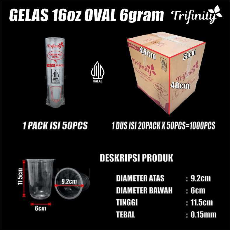Gelas 16oz Oval Pack 50pcs Trifinity 6gr