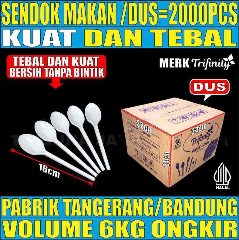 Sendok Makan Putih Dus 2000pcs Trifinity Cemerlang Kilat Halal Tebal Tebal 3.2gr E2103T7H12B3