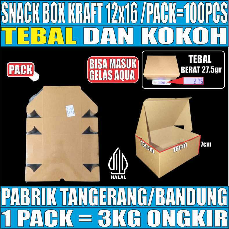 Snack Box Coklat 12x16 Pack 100pcs Kraft 275gsm Tutup sambung